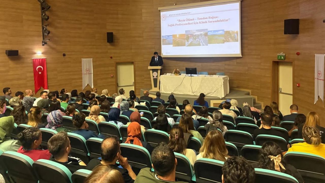 Düzce Üniversitesi ve İl Sağlık Müdürlüğü iş birliğiyle düzenlenen “Beyin Ölümü Tanıdan Bağışa; Sağlık Profesyonelleri İçin Klinik Sorumluluklar” sempozyumu, Düzce Atatürk Devlet Hastanesi Konferans Salonu’nda gerçekleştirildi.