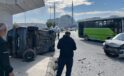 Düzce Üniversitesi Kavşağında Korkutan Kaza Araç Yan Yattı