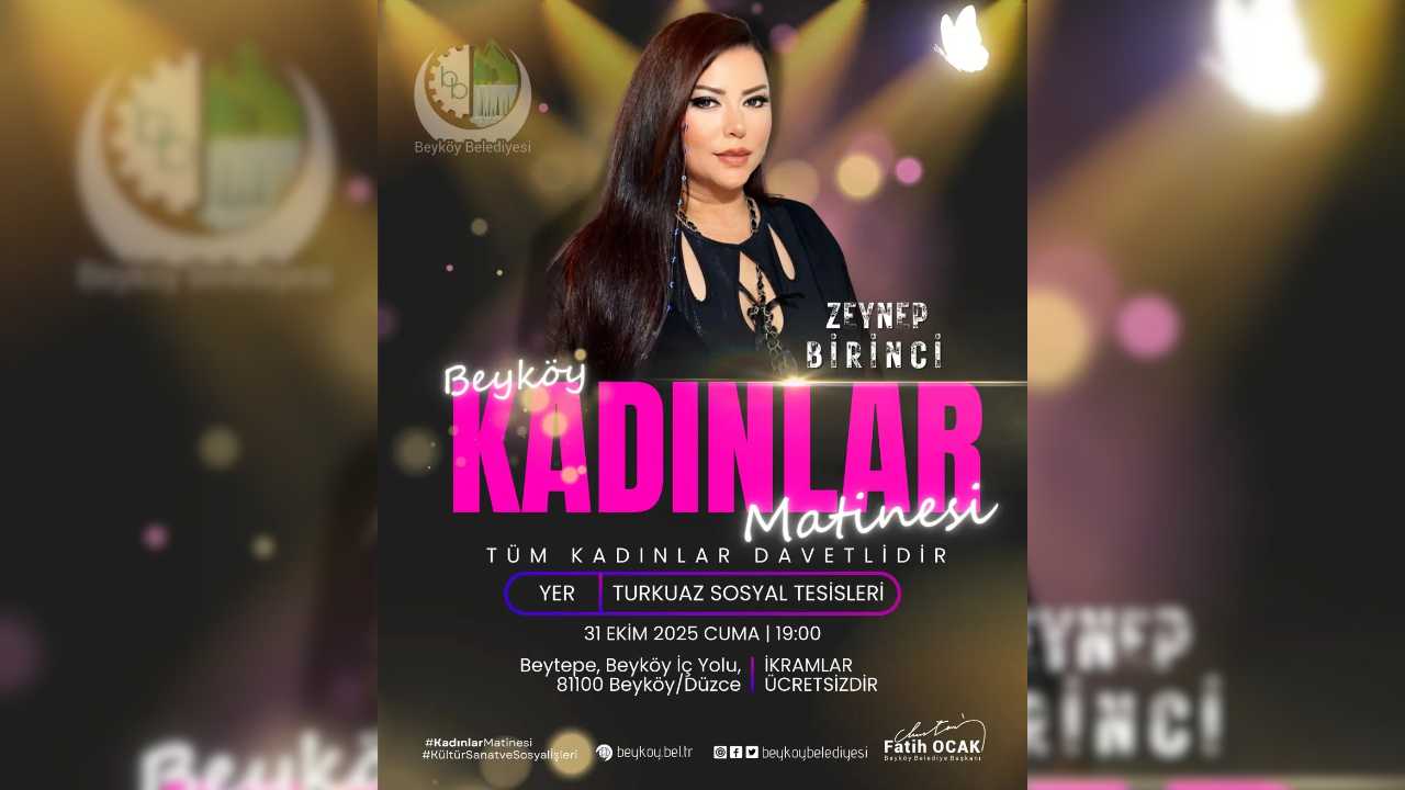 Beyköy Belediyesi tarafından düzenlenen Kadınlar Matinesi, 31 Ekim 2025 Cuma günü Turkuaz Sosyal Tesisleri’nde gerçekleştirilecek.